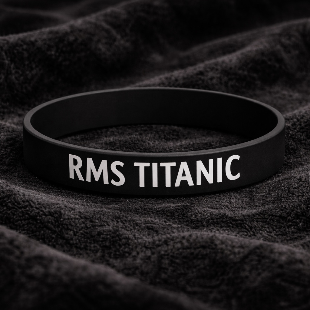 Bracelet en silicone blanc, souple et confortable, avec l’inscription RMS Titanic. Taille universelle, adapté à tous les poignets, idéal pour un usage quotidien ou comme accessoire symbolique.