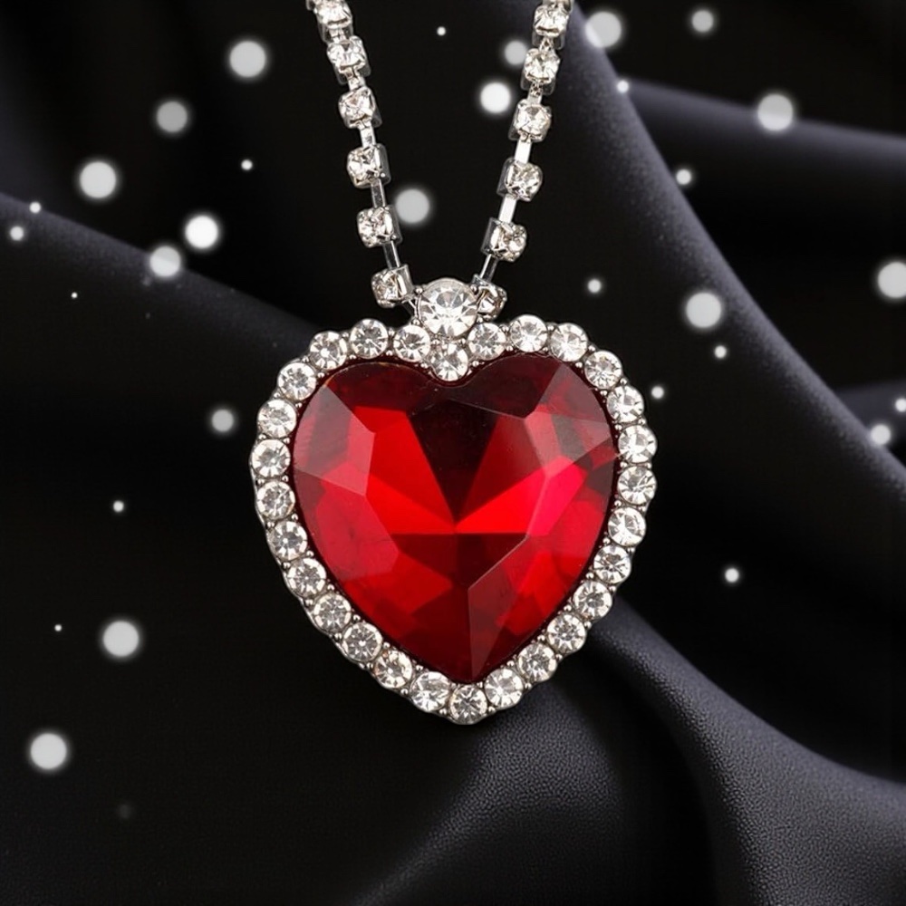 Laissez-vous séduire par ce collier emblématique, orné d’un pendentif en forme de cœur rouge intense, serti de pierres scintillantes. Son design majestueux évoque l’élégance et les émotions fortes liées à l’univers du Titanic.