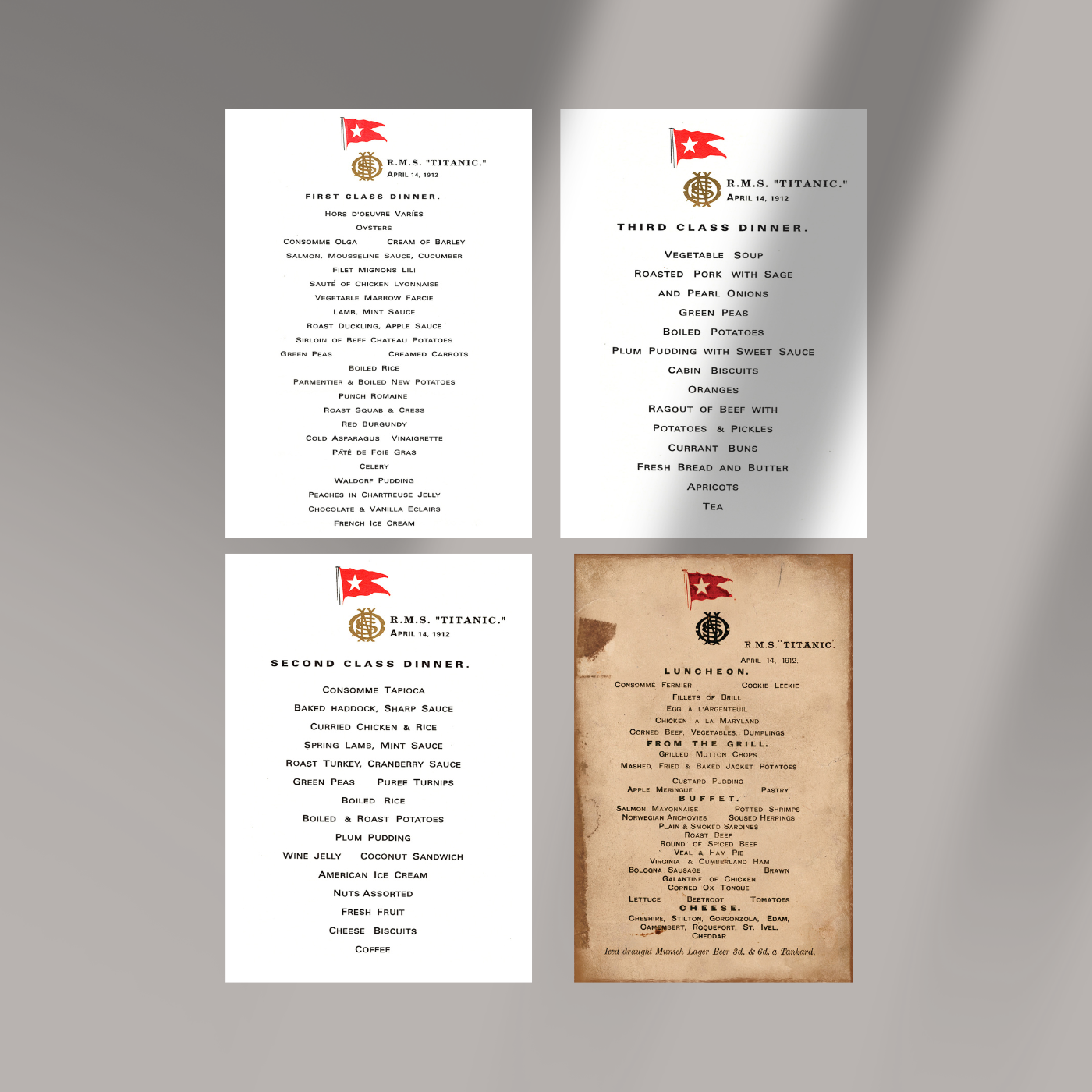 Pack de 4 menus du Titanic – (Reproductions historiques)