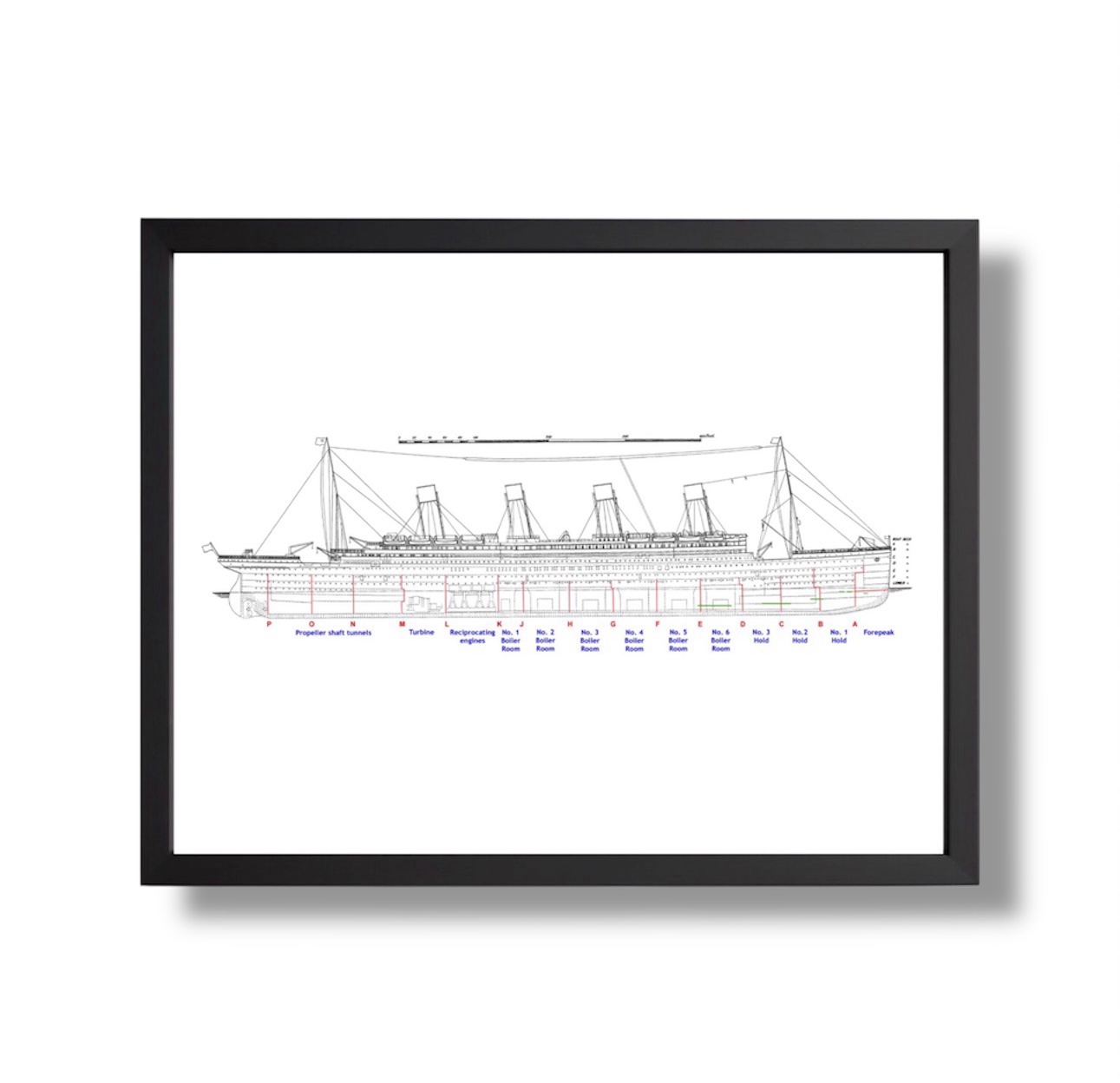 Redécouvrez le RMS Titanic avec ce plan de profil historique, imprimé et encadré avec soin.