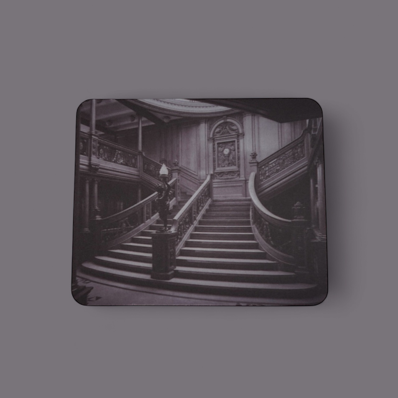 Plongez dans l’élégance légendaire du Titanic avec ce tapis de souris unique représentant le célèbre Grand Escalier.